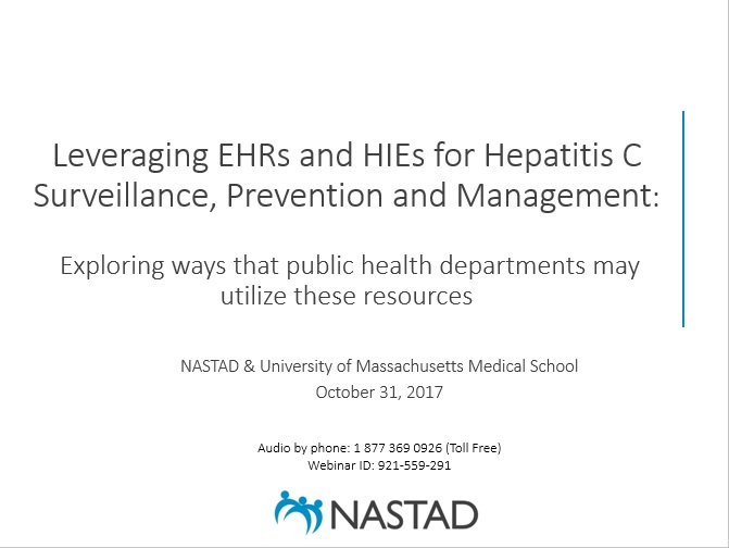 This presentation for the National Alliance of State and Territorial AIDS Directors explores the ways public health departments can use electronic health record (EHR) or health information (HIE) exchange data for Hepatitis C surveillance, prevention and management.